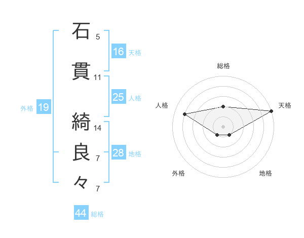 石貫 綺良々さんを姓名の画数から五運を鑑定