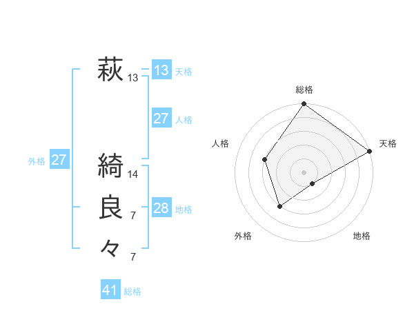 萩 綺良々さんの総格は41画の5点!