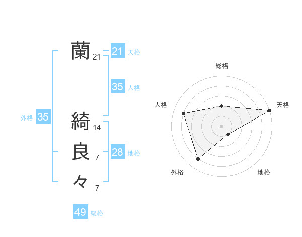 蘭 綺良々さんを姓名の画数から五運を鑑定