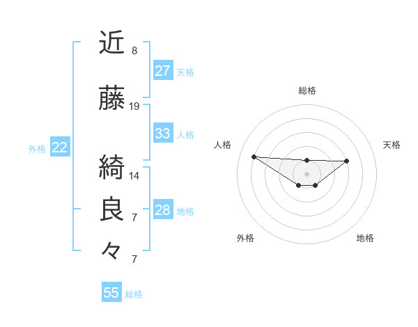 近藤 綺良々さんを姓名の画数から五運を鑑定