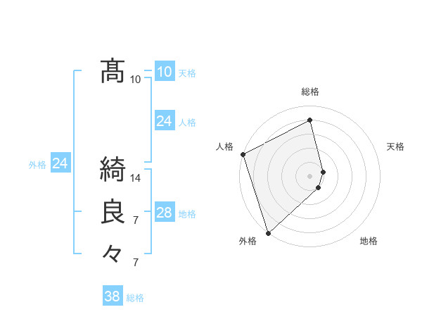 髙 綺良々さんを姓名の画数から五運を鑑定