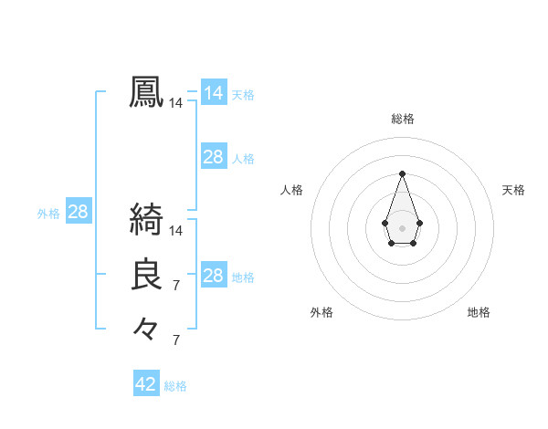 鳳 綺良々さんの総格は42画の3点!
