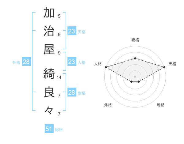 加治屋 綺良々さんを姓名の画数から五運を鑑定