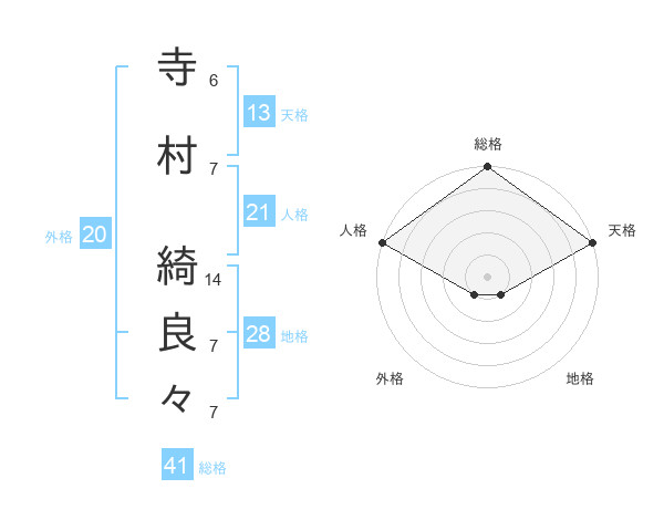 寺村 綺良々さんの天格は13画の5点!