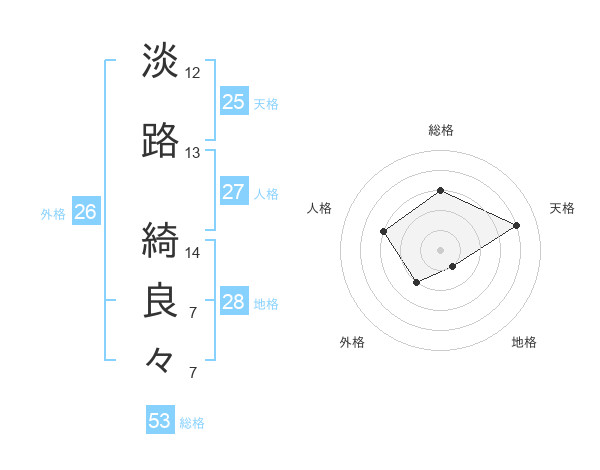 淡路 綺良々さんを姓名の画数から五運を鑑定