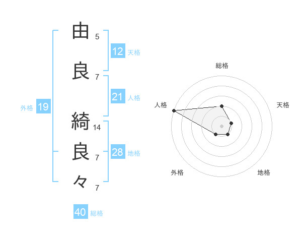 由良 綺良々さんの総格は40画の2点!