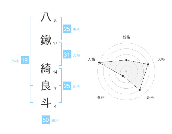 八鍬 綺良斗さんを姓名の画数から五運を鑑定