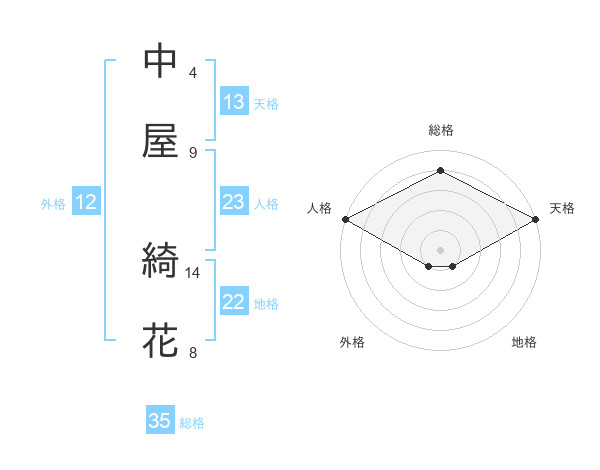 中屋 綺花さんを姓名の画数から五運を鑑定