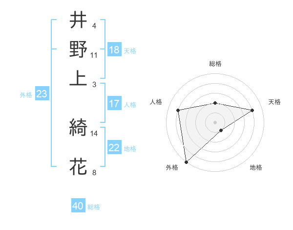 井野上 綺花さんを姓名の画数から五運を鑑定