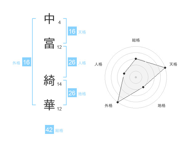 中富 綺華さんの総格は42画の3点!