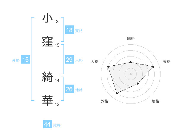 小窪 綺華さんを姓名の画数から五運を鑑定