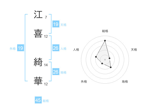 江喜 綺華さんを姓名の画数から五運を鑑定