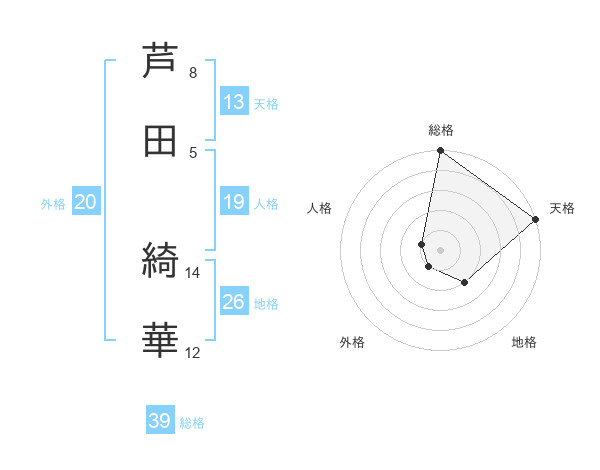 芦田 綺華さんの天格は13画の5点!