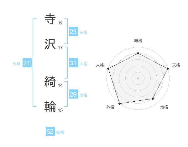 寺沢 綺輪さんの天格は23画の5点!
