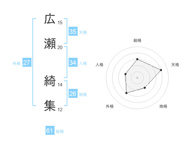 広瀬 綺集さんを姓名の画数から五運を鑑定