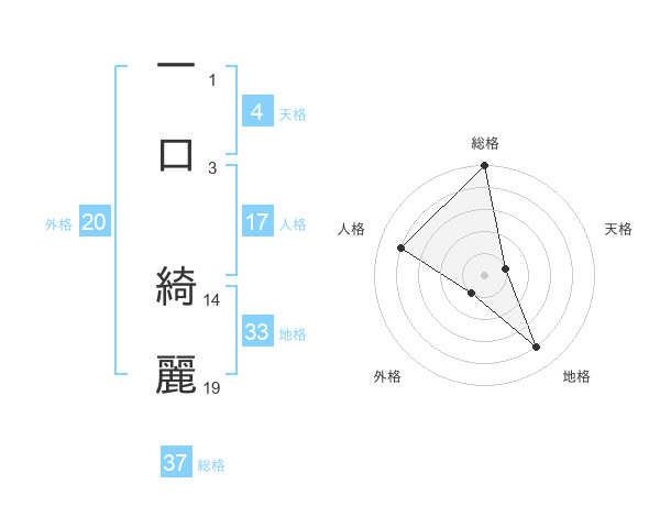 一口 綺麗さんの総格は37画の5点!