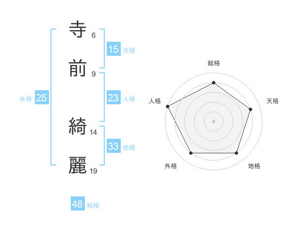 寺前 綺麗さんを姓名の画数から五運を鑑定