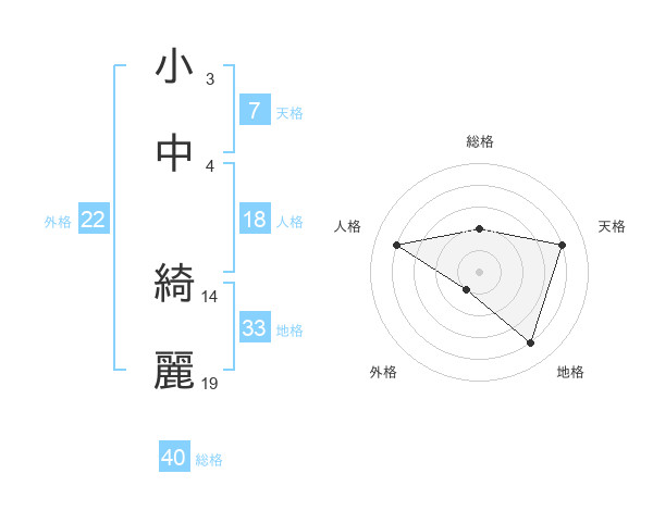 小中 綺麗さんの総格は40画の2点!