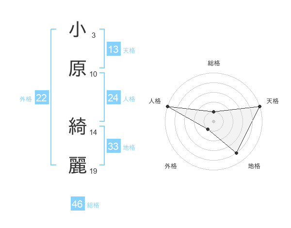 小原 綺麗さんを姓名の画数から五運を鑑定