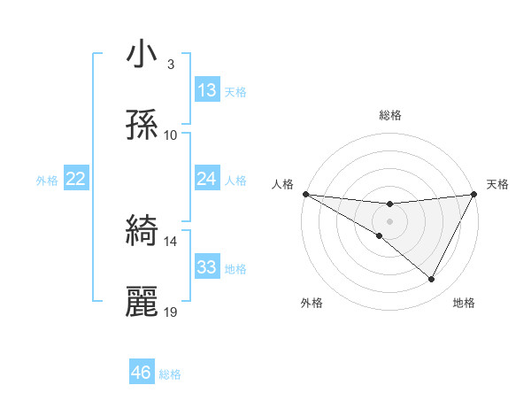 小孫 綺麗さんの外格は22画の1点!