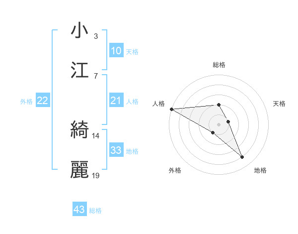 小江 綺麗さんを姓名の画数から五運を鑑定