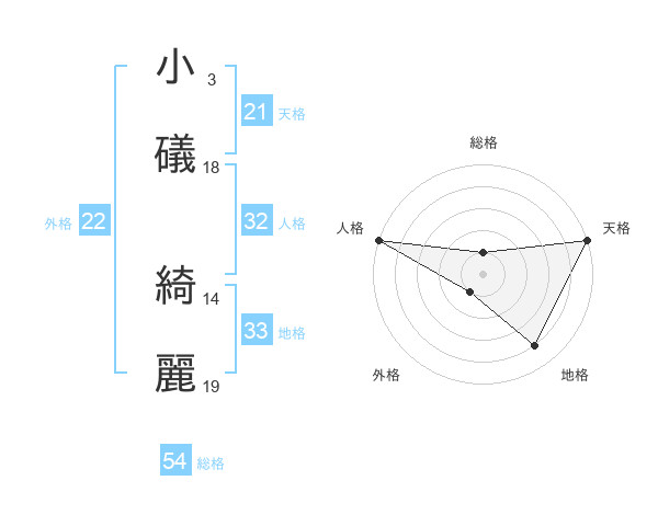 小礒 綺麗さんを姓名の画数から五運を鑑定