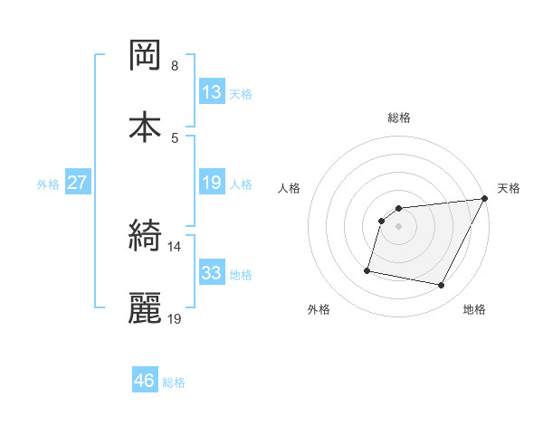 岡本 綺麗さんの天格は13画の5点!