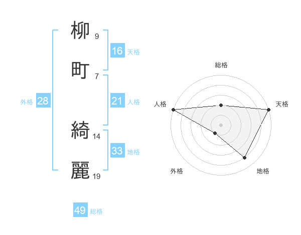 柳町 綺麗さんの総格は49画の2点!