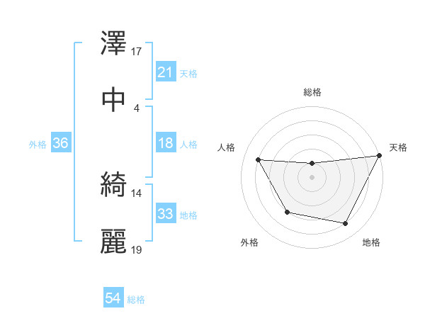 澤中 綺麗さんを姓名の画数から五運を鑑定
