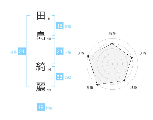 田島 綺麗さんの外格は24画の5点!