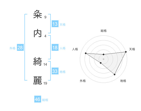 粂内 綺麗さんを姓名の画数から五運を鑑定