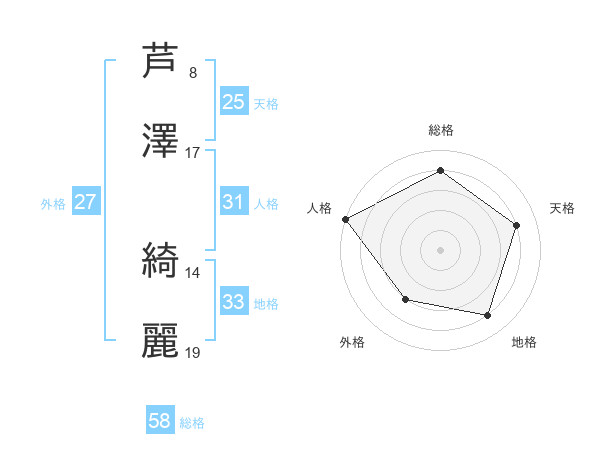芦澤 綺麗さんの総格は58画の4点!