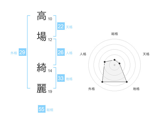 高場 綺麗さんを姓名の画数から五運を鑑定