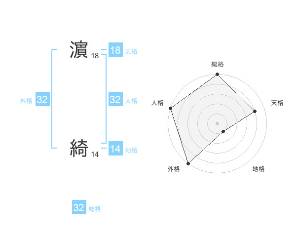 濵 綺さんの総格は32画の5点!