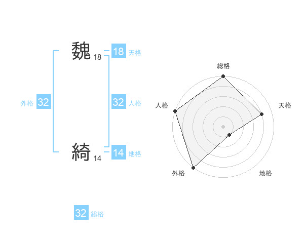 魏 綺さんの総格は32画の5点!