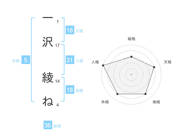 一沢 綾ねさんの天格は18画の4点!