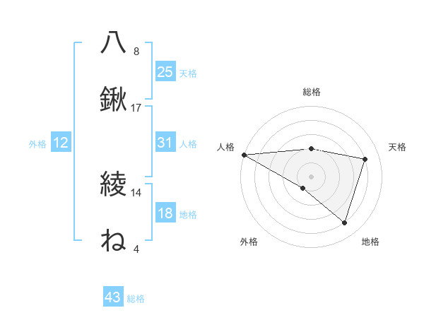 八鍬 綾ねさんの天格は25画の4点!