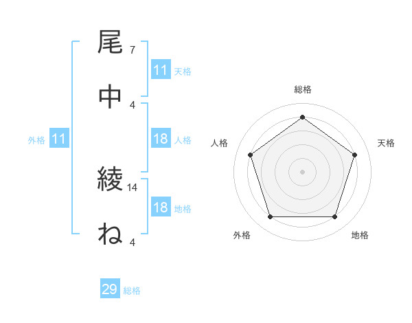 尾中 綾ねさんの天格は11画の4点!