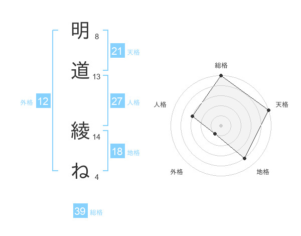 明道 綾ねさんの天格は21画の5点!