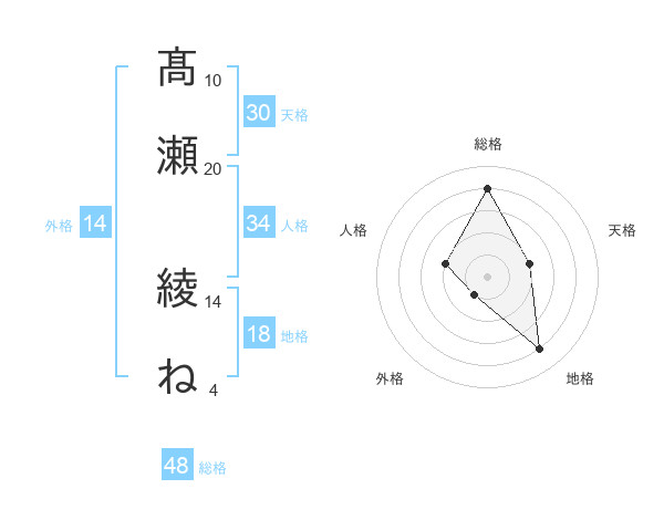 髙瀬 綾ねさんを姓名の画数から五運を鑑定