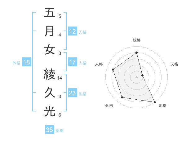五月女 綾久光さんを姓名の画数から五運を鑑定