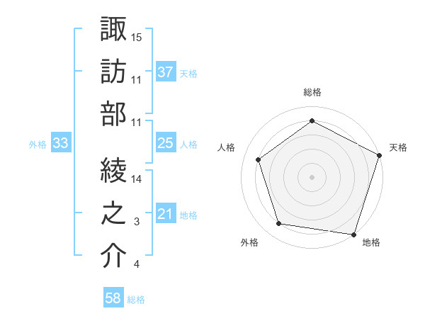 諏訪部 綾之介さんの総格は58画の4点!
