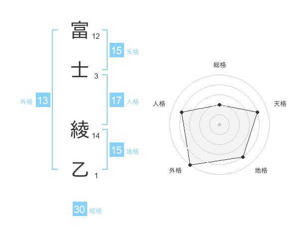 富士 綾乙さんの天格は15画の4点!