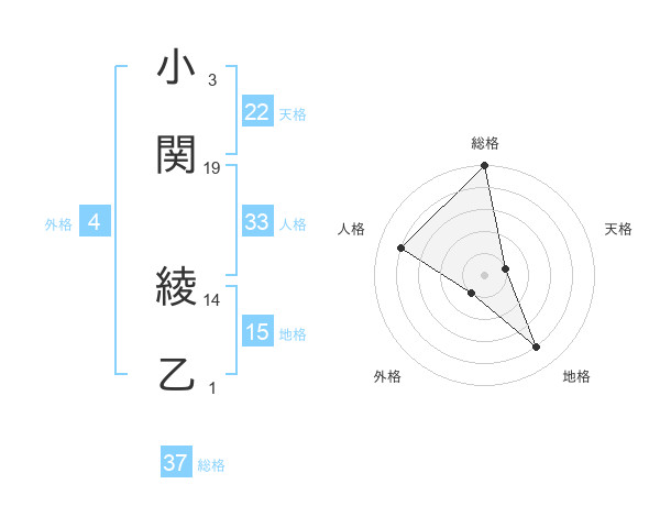 小関 綾乙さんを姓名の画数から五運を鑑定