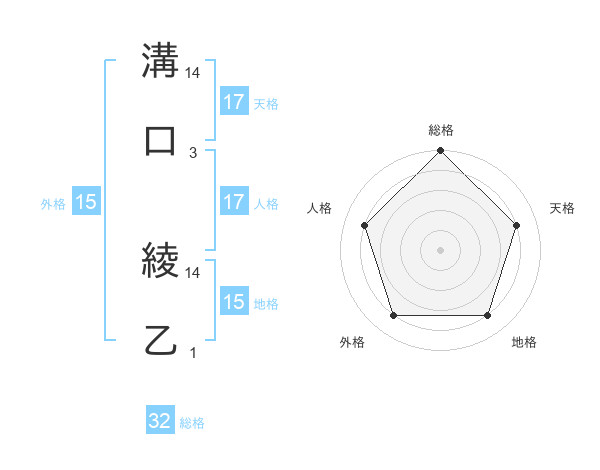 溝口 綾乙さんの天格は17画の4点!