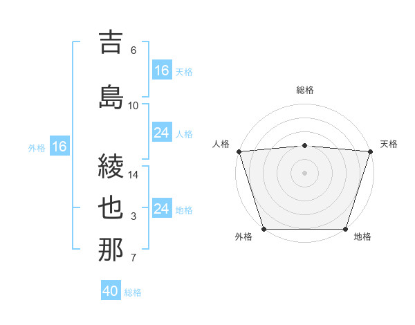 吉島 綾也那さんの総格は40画の2点!