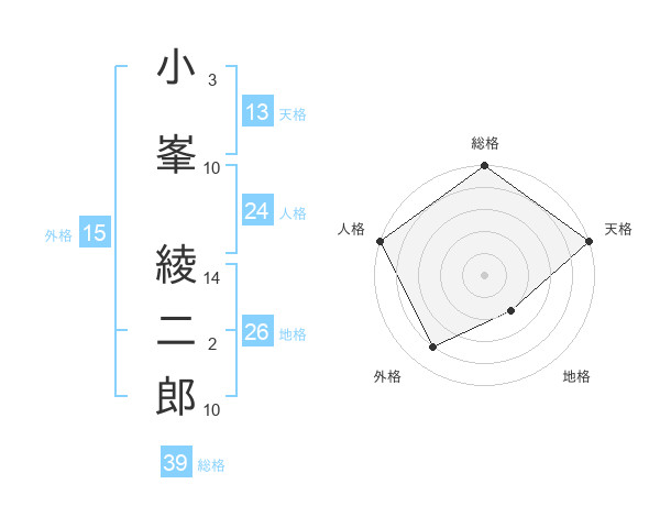 小峯 綾二郎さんを姓名の画数から五運を鑑定