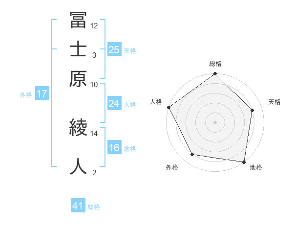 冨士原 綾人さんの総格は41画の5点!