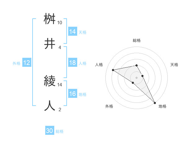 桝井 綾人さんの天格は14画の1点!
