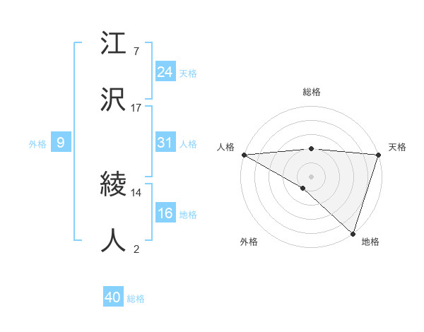 江沢 綾人さんを姓名の画数から五運を鑑定